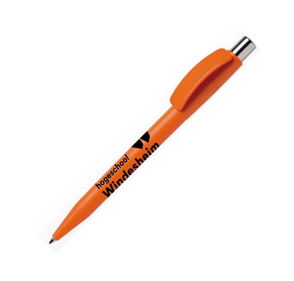 Windesheim balpennen in verschillende kleuren te verkrijgen. Bedrukking in het wit of in het zwart afhankelijk van de kleur balpen. Definitieve prijs is afhankelijk van de bestelling. Genoemde prijs is een richtprijs voor een afname van 250 stuks met bedrukking. Minimale afname 250 stuks per kleur.